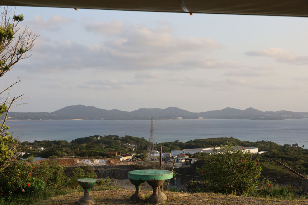 左側に見えるのが満月、中央付近が恩納村の