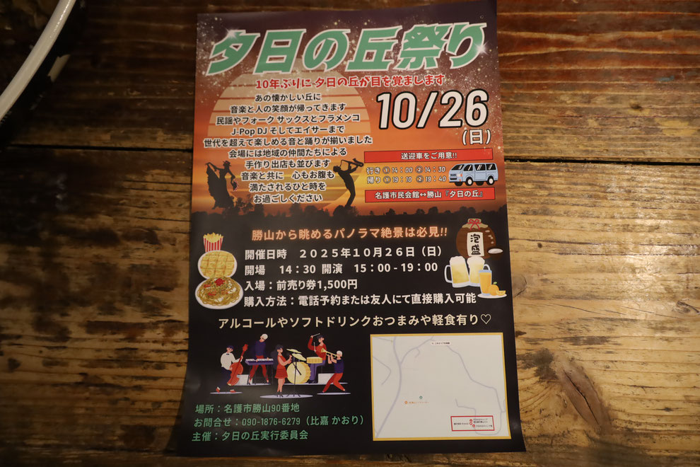 2025年10月26日(日曜日)15時、名護市勝山90番地夕日の丘で開催します前売り券1500円